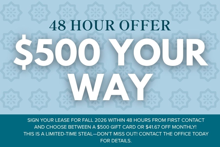 Get to campus conveniently less than two miles away.